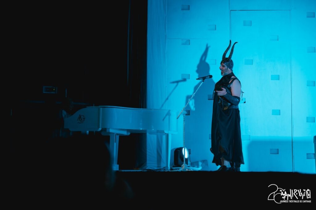 صوت أوبرالي ساحر يغني، صوت رقيق يخترق القلب لجماله، صوت مغنية الاوبرا نعمت عبد الحسين،حين يشتعل الضوء يكتشف المتفرج مدى قبح وجه الشخصية، وجه مشوّه بأنف خنزير وتجاعيد حيوانية تشبه المسخ، هذا المسخ اعتمد تقريبا في كل الوجوه القرينة، من الفيل الى الكلب وجسد الشخصية المشوّه بالكامل، صلعاء وكل جسدها مقشّر بفعل التعذيب، تفاصيل تبدو وكأنها حقيقية لشدة الاتقان، دقة الماكياج الموضوع على وجوه الشخصيات واجسادهم من ابداع الماكيور والفنان التشكيلي ضياء حمزة، فنان متمكن من الألوان وحركة الريشة جعل وجوه الممثلين كما اللوحة البيضاء رسم عليها دواخل الشخصيات وألمهم وجعل القبح جميلا، فلضياء حمزة بصمته الخاصة في التعامل مع اللون والفكرة.