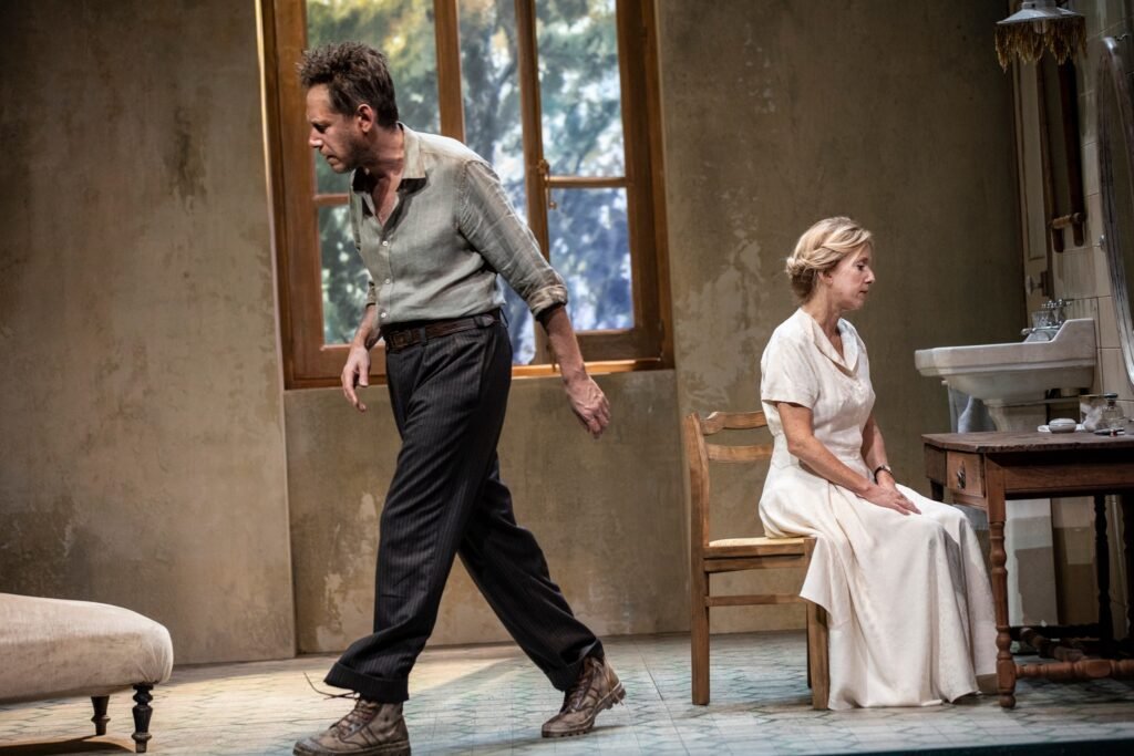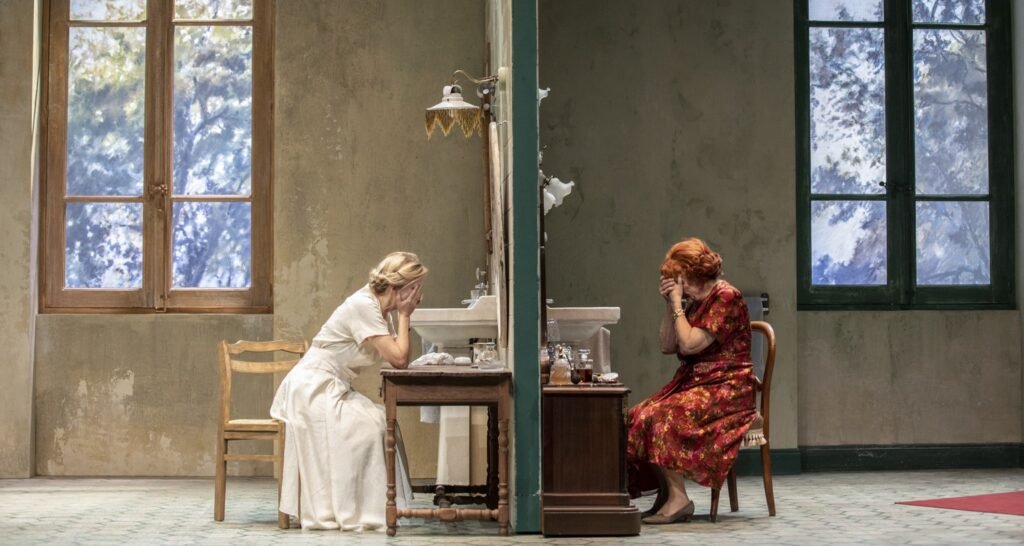 منذ دخول كاترين هييغل إلى المسرح، ينقلب إيقاع العرض رأسًا على عقب. أداؤها الدقيق والمشحون بعاطفة مضبوطة يمنح النص توتره الجمالي، فهي تُجسّد التناقض الإنساني بين الرقة والانفعال، بين الرغبة في الحياة والاعتراف بالموت. هييغل، التي تمرّست طويلًا في الكوميدي-فرنسيز، تُقدّم نموذجًا لما وصفه أنطونان أرتو في المسرح وقرينه (1938) بـ “الممثل الذي لا يقول النص بل يتجسّده”. جسدها يتحوّل إلى لغة ثانية تُعيد إنتاج ما يكتبه سيمون بالنثر — لغة نابضة تُترجم الصمت إلى حركة، والذاكرة إلى أنفاس متقطعة.