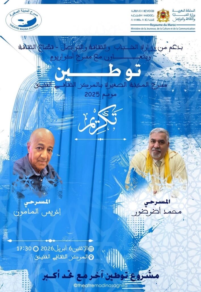 وفي لحظة ثقافية مفعمة بالوفاء والاعتراف، احتضن المركزالثقافيبمدينةالفنيدق، مساء يوم الاثنين 6 أبريل 2026، لقاءً فنياً تكريمياً مميزاً، خصص للاحتفاء بالقامتين البارزتين في المسرح المغربي، الأستاذ محمدأضرضور والأستاذ إدريسالمامون، ضمن فعاليات برنامج “توطين مسرح المدينة الصغيرة شفشاون”.